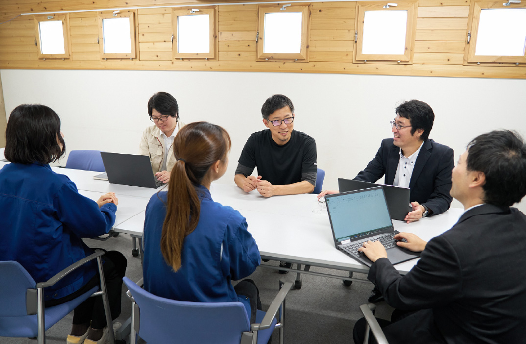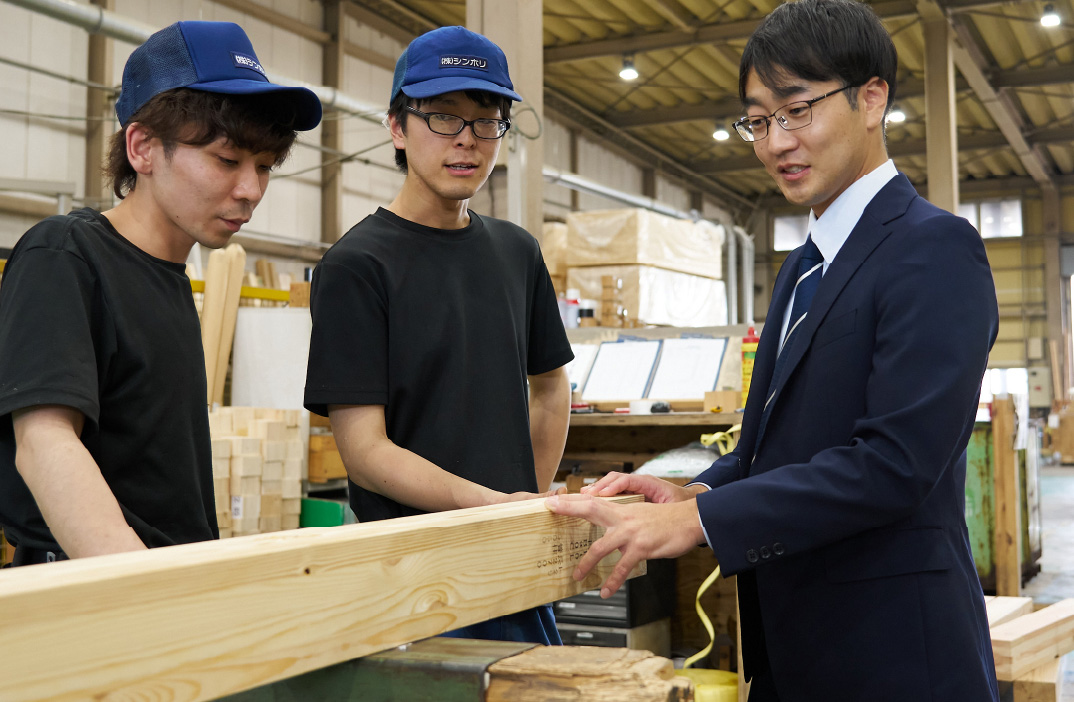 我々はプレカット会社として地域を支える工務店様に大きくして頂いた会社です。増えていく事業部のコンセプトはすべて『工務店様の住宅受注に貢献すること』です。工務店様には工法から環境保護対策まで、ハウスメーカーにはできない自然素材の使用や従来にない機能を備えたパッシブ型の家づくりのご提案を行います。家の中に無垢の丸太が立っているような”自然と暮らす家”、快適な温熱環境をつくるパッシブエアコンやホウ酸防蟻処理等もその一つです。これらは住まわれる方々の住まい心地を考えて辿り着いたものです。この仕事のやりがいは家=夢の実現に貢献できること。一生ものの『家選び』に悩む工務店様のお客様に、不動産の提案から家の提案、中立の立場での建材・木材、時代のニーズに合うものをご提案できるのも嬉しいことです。『もっともっと暮らしやすい家は造れないか?』というイメージ力を社員全員が意識し、仕事に取り組んでいます。工務店様がお客様をお連れできるモデルハウスも建設しました。工務店様支援のためにできることをまだまだ探し続ける。シンホリは工務店様そしてその先のエンドユーザー様にも夢と感動を与える存在であり続けたいと思います。