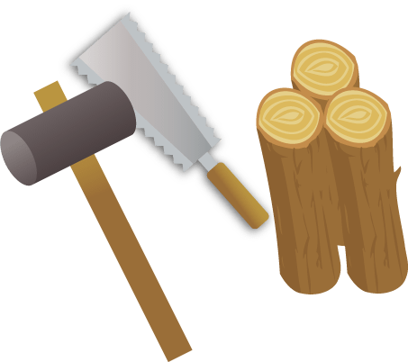 材木が加工される様子はとってもダイナミック!なが~い材木が機械の上を運ばれる様子は必見です。機械で加工する一方、人の手で行う特殊で繊細な加工の様子も見どころのひとつ。木を自在に加工する手仕事の技に注目!!